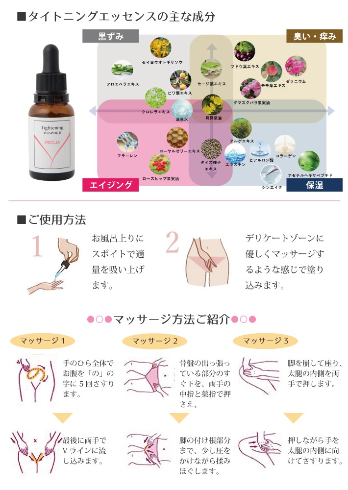 「清浄」と「保湿」を同時に叶える、デリケートゾーン専用美容液 3本セット PECLIA ペキュリア PDタイトニングエッセンス 30ml (美容液 エイジングケア デリケートゾーン スキンケア 清浄 保湿 マッサージ 送料無料
