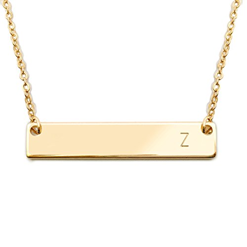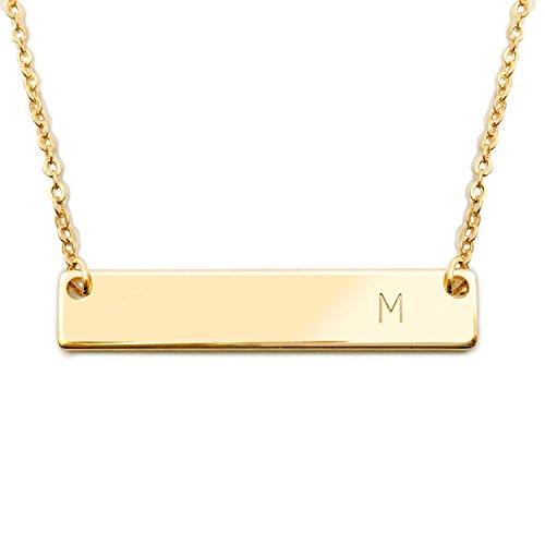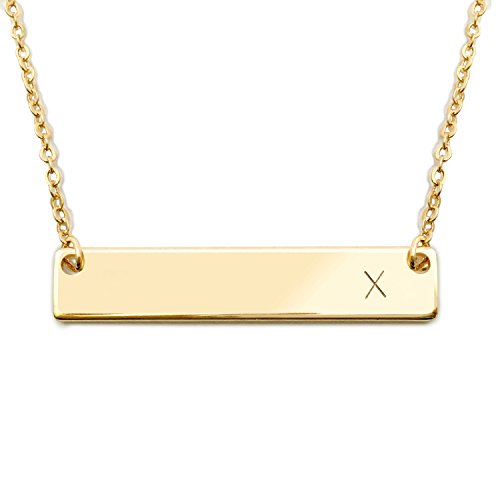 Perfectly simple and elegant in every way, this necklace maintains its classic appeal with a polished horizontal bar charm. The minimalist qualities will add just the right amount of shine to any outfit, making it perfect for daily wear and for special occasions. Make her feel special by purchasing one as a gift she is sure to adore. In order to extend the life of this plated piece, remove jewelry when sleeping, exercising, or doing other physically strenuous activities, as prolonged contact with sweat will cause the plating to wear away faster. In addition, avoid contact with perfumes, water, body oils, and other chemicals, including household cleaners. Never use chemical jewelry cleaners as these will wear away at the plating and do more harm than good. For light cleaning, gently polish with a soft, lint-free cloth in order to avoid scratching. Store in a cool dry place. It is highly advised to wear solid gold or sterling silver jewelry if one has sensitive skin.Feature