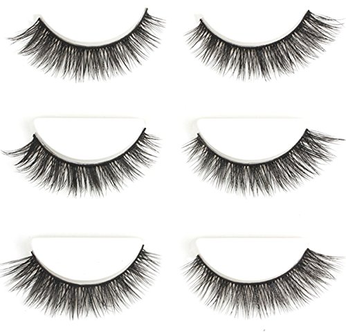 Urbun 3 Pairs Luxurious Real Mink 3D Eyelashes Natural Volume Cross Thick False Eyelashes