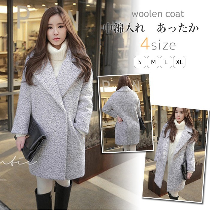 ★ご注意:こちらの商品はお客様がご入金後、メーカーから取り寄せさせて発送する予定です。ご入金からお届けまで約7営業日出荷(沖縄離島12日)ほど時間がかかります。予めご理解いただきました上でご注文下さいますようお願いいたします。★素材:ウール混+ボリエステル★伸縮性:なし★生地の厚さ:厚手★カラー:写真参考※お客様ご使用のPC環境により商品画像のカラーが多少異なる場合があります。仕入時期により多少デザインなど異なる場合があります。ご了承ください。★サイズ(CM):S:バスト88 肩幅64 袖丈38 着丈82M:バスト92 肩幅65 袖丈38.5 着丈83L:バスト96 肩幅66 袖丈39 着丈84XL:バスト100 肩幅67 袖丈39.5 着丈85※サイズは人の手によって測っているため、1-3cmの誤差がある場合がございます。予めご了承下さいませ。