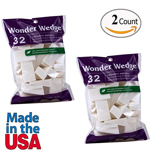 Cosmetic Wedges Made in USA Foam Makeup Sponges Puffs from Wonder Wedge (64 Count - (2 Pack - 32 Count))