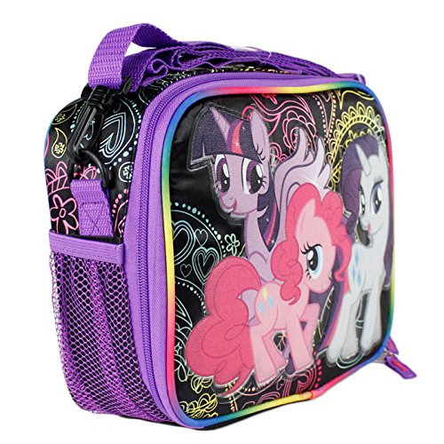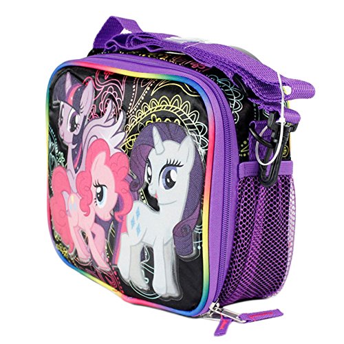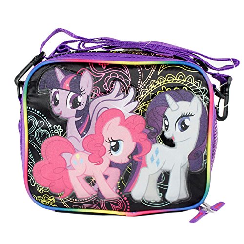 -. Title : My Little Pony BLACK Insulated Lunch Bag with Side Pocket and Long Shoulder Carrying Strap