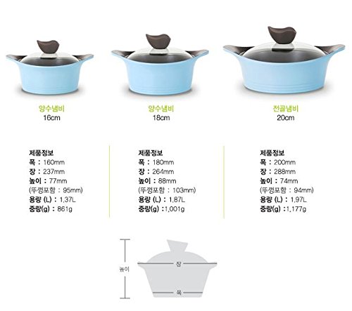 -. Feature : 2012 RedDot Design Award Winner / 6.3" (16cm) Stockpot & 7" (18cm) Stockpot & 7.8" (20cm) Low Stockpot / Rivetless Handles: Seamlessly integrated for easy, thorough cleaning. / Ecolon Ceramic Coating Superior nonstick performance without PFOA/PTFE. / Cast Aluminum & Patented Steam Vent Hidden under lid prevents overflow.