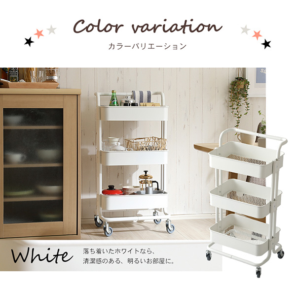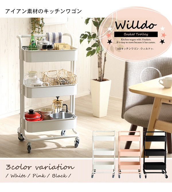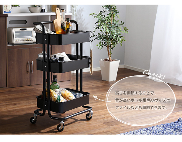 ●粉体塗装で錆に強いアイアン素材の3段キッチンワゴン♪