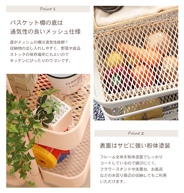 ●バスケットの棚底は通気性のよいメッシュ仕様