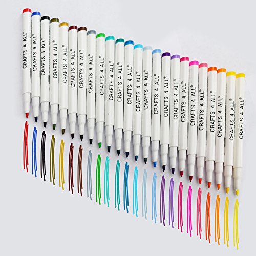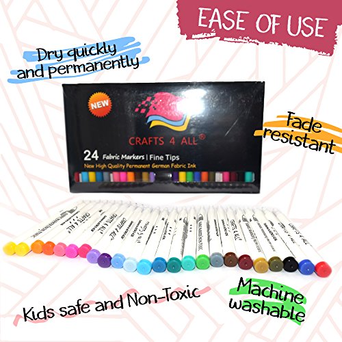 Fabric Markers Pens Permanent Color Art Markers 24 SET Premium Graffiti Fine Tip MINIMAL BLEED By Crafts 4 ALL .Child safe & non-toxic.
