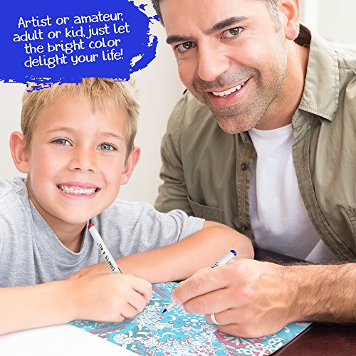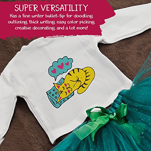SUPER VERSATILITY- Has a fine writer bullet-tip for doodling, outlining, thick writing, sketching,underlining,easy color picking, creative decorating,pro-grade calligraphic writing or any DIY project on fabrics or paper. Artist or amateur, adult or kid, just let the bright colors delight your life.Less messier than fabric paint.