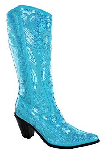 | Helen's Heart Women's Sparkle Sequin Bling Full Tall Western Cowboy Boots |