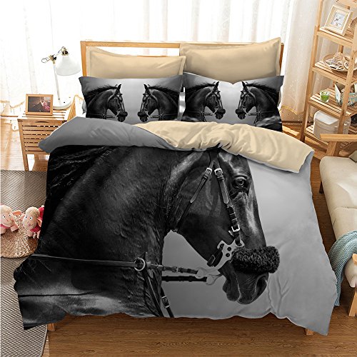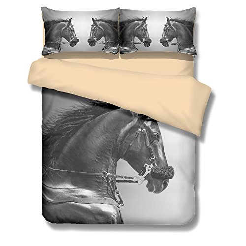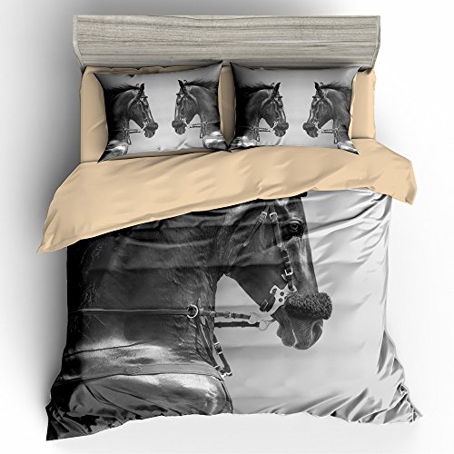 (BOMCOM)/Bedding Bath/Bedding/DIRECT FROM USA/BOMCOM 3D Digital Printing Close-up Portrait of a Sports Stallion in a Hackamore 3-Piece Duvet ...