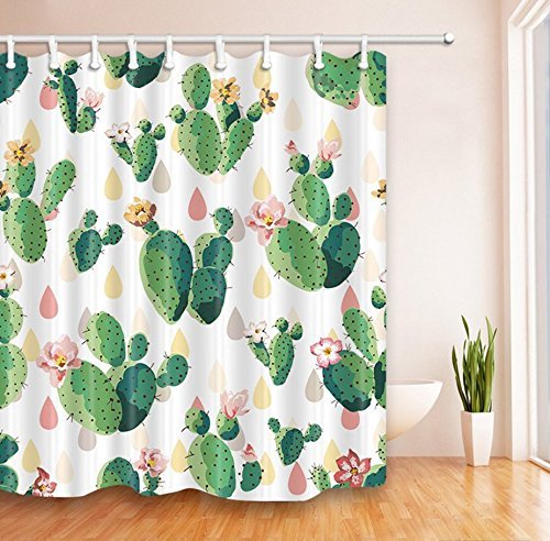 Get Orange Green Plants Cactus succulent Mildew Resistant Polyester Fabric Shower Curtain Set Fantastic Decorations Bath Curtain 72x72Inch