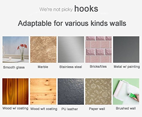 ★★★【ADAPTABLE SOME KINDS WALLS】★★★-- They are not weak hooks even they looks delicate. They could adaptable for some kinds walls like Smooth glass/Marble/Stainless steel/Bricks/tiles/Metal w/ painting/ Wood w/ coating/Brushed wall and so on.