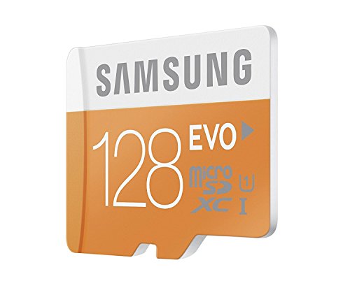 Samsung microSD 128GB EVO Memory Card Save the moments of a lifetime. For a lifetime. Get the most out of your smartphone or tablet PC with Samsung's EVO 128GB microSD Memory Card. This high-performance memory card features read speeds of up to 48 MB/s for transferring music, photos, and videos and is UHS-1 enabled to capture Full HD video. Waterproof, temperature proof, magnet proof, and X-ray proof, this reliable memory card ensures your files remain safe during life's little mishaps. An included SD adapter lets you use the card with your digital camera, laptop, or desktop computer Includes SD Adapter for Use with PCs and Digital Cameras The Samsung EVO 128GB microSD Memory Card includes an adapter so you can use your card with SD-enabled devices such as digital cameras, laptops, and printers. This lets you easily transfer photos, music, and video content from your mobile deviceFeature