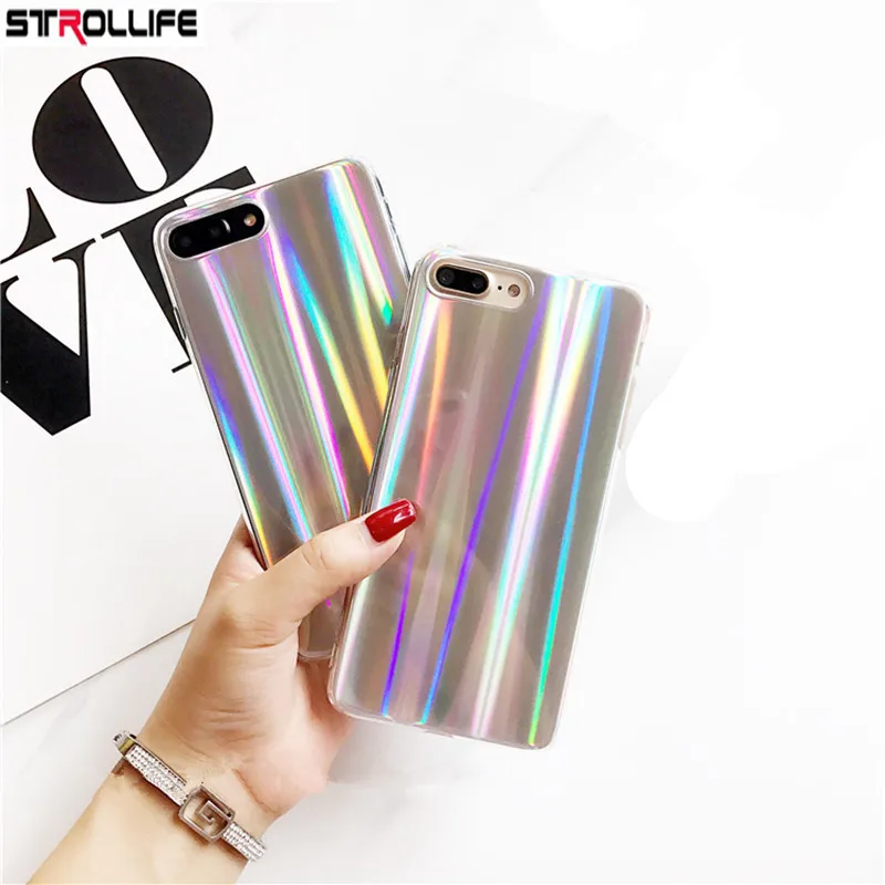Features:Fashion Laser Gradient Rainbow Glitter Cover Case Coque Capa