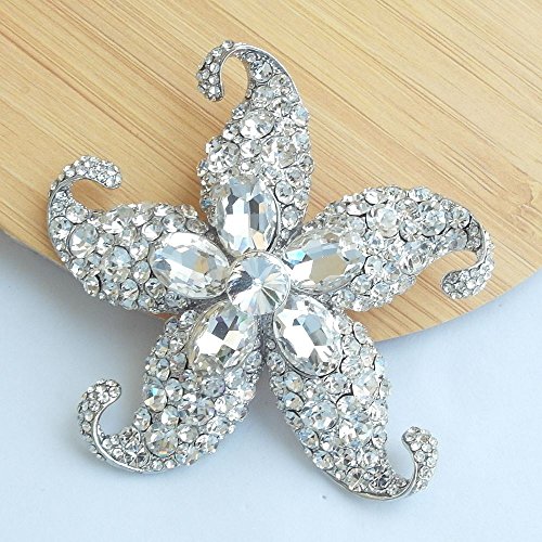 -. Title : Sindary Wedding 3.15" Silver-tone Clear Austrian Crystal Starfish Brooch Pin