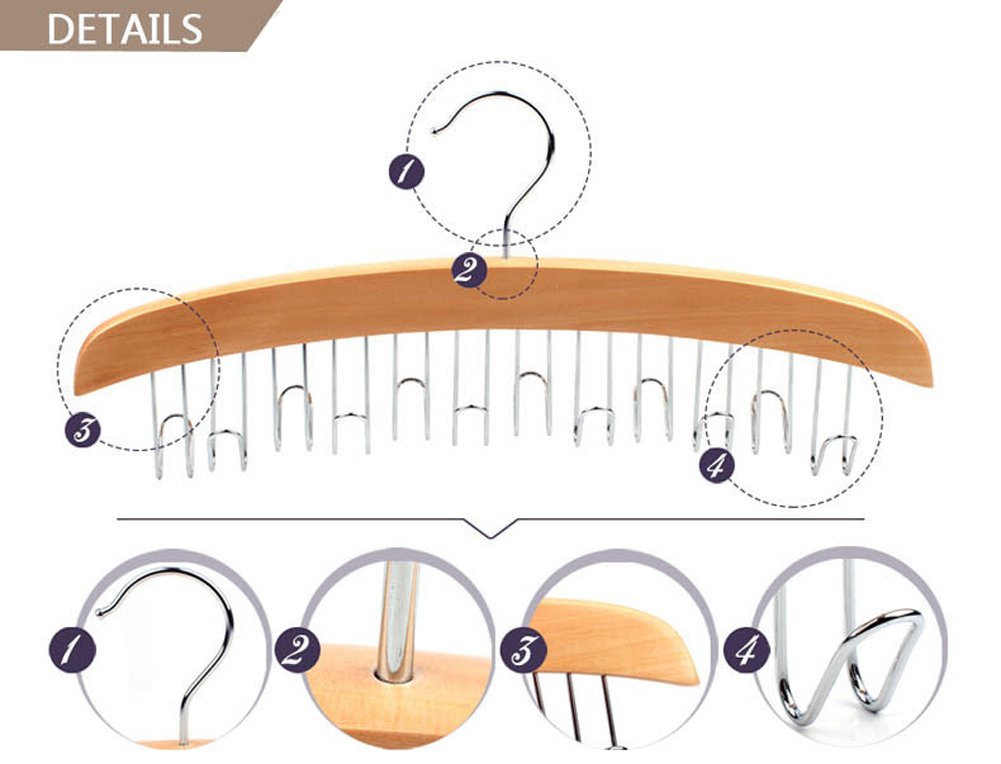 【新たなデザイン】 :新しい設計を採用し, フック部分はネクタイとベルトとスカーフを完璧的に収納できます、 すべり落ち防止ができます。 ハンガーの木製の部分は広い肩でスーツとコートを掛けてし、形を保つことができます!