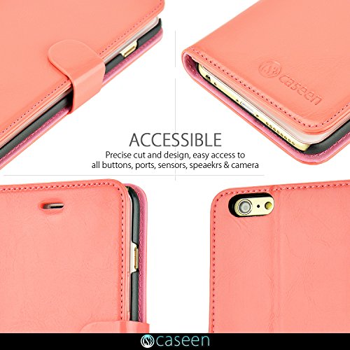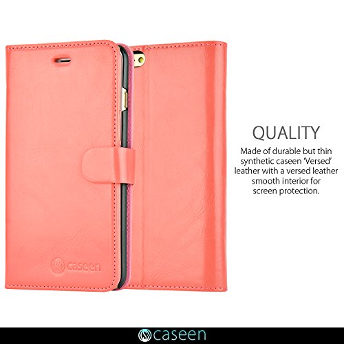 iPhone 6 Plus Wallet Case, caseen Apple iPhone 6 Plus Leather Case Ottimo Slim Folio (Coral Peach) w/ Stand Flip Cover for Apple iPhone 6 Plus 5.5 Inch. The caseen Ottimo Wallet series case for the Apple iPhone 6 Plus features 3 credit card holders, and cash carry flap. Ottimo Wallet also features a useful kickstand feature, and a strong magnetic closure to ensure your Apple iPhone 6 Plus stays secure in place.