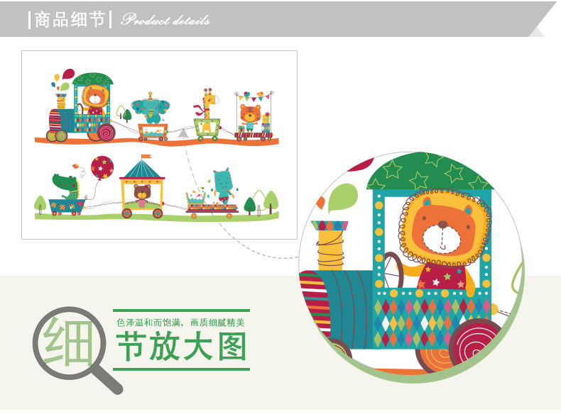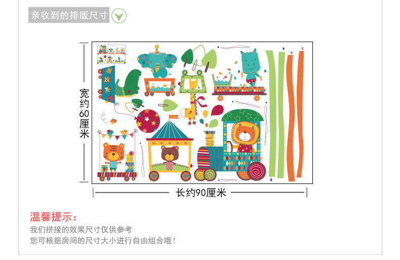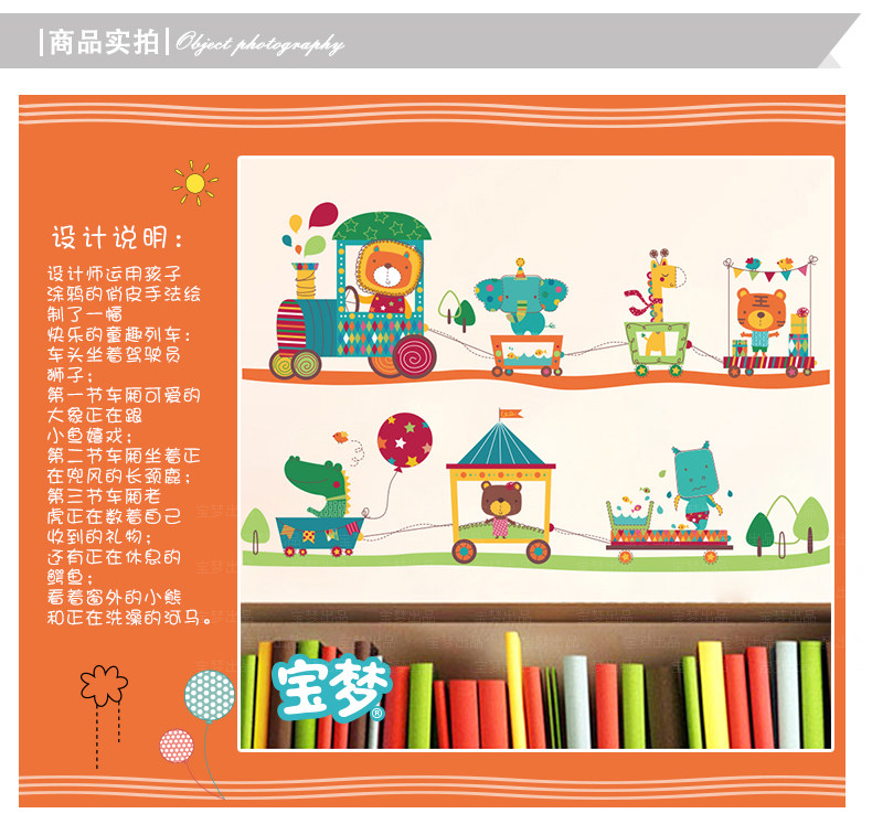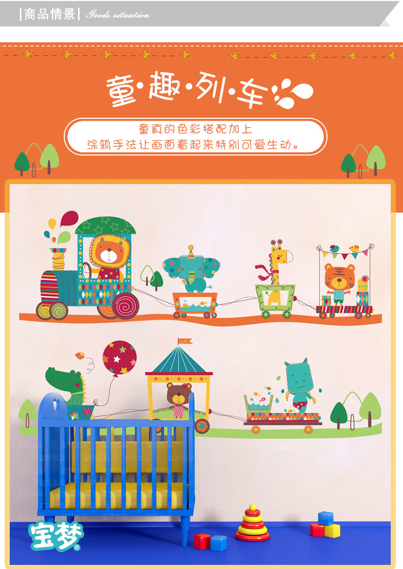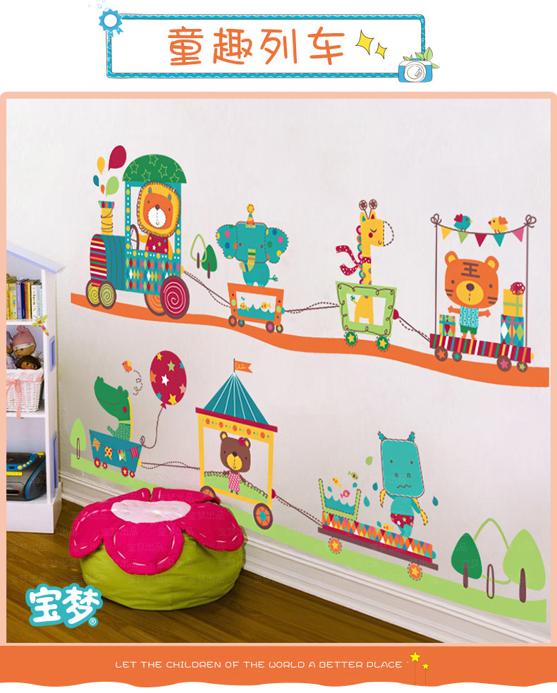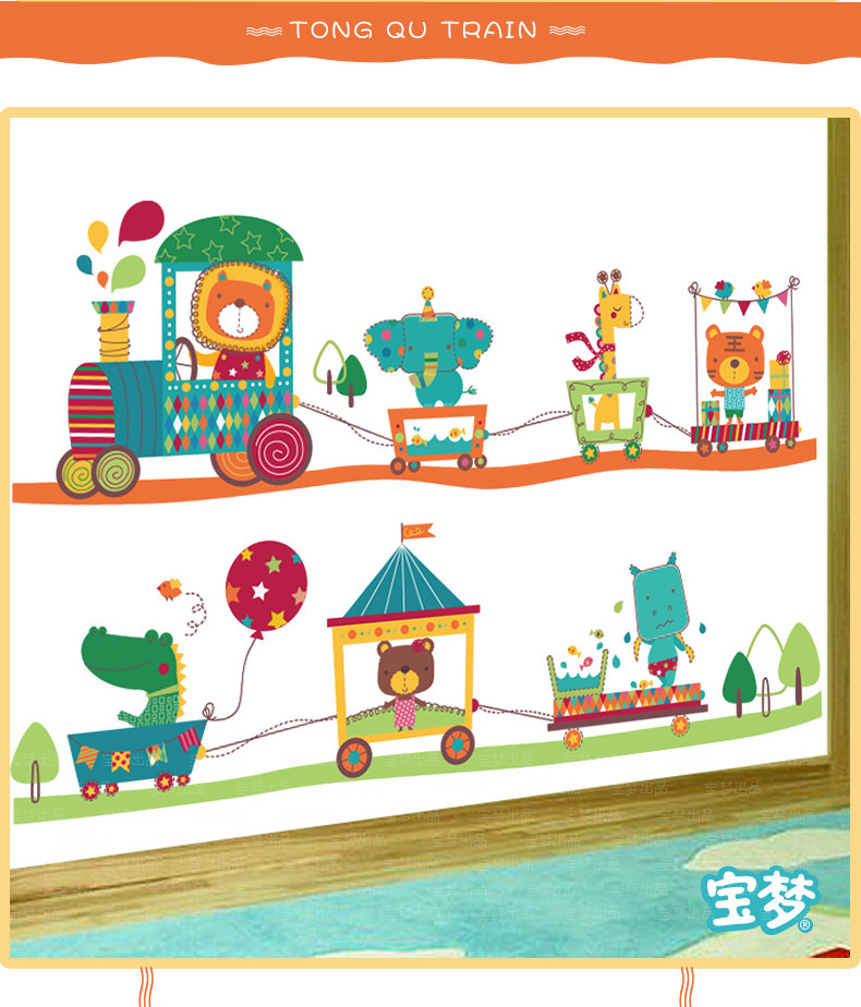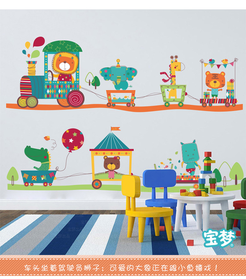 卡通儿童房宝宝卧室床头背景装饰品墙贴纸可爱幼儿园动物火车贴画