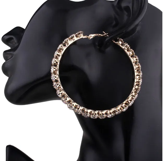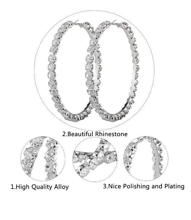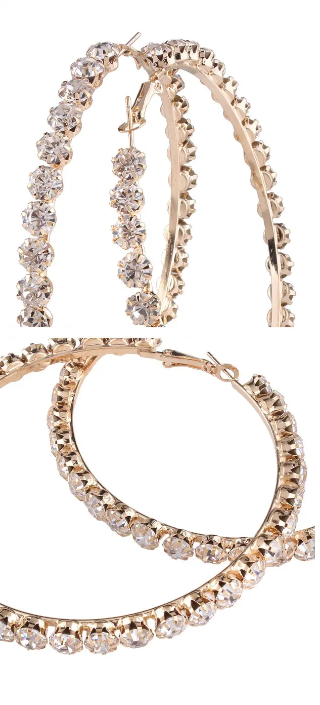 Earrings Style:Chunky Rhinestone Hoop Earrings Elegant Geo Circle Earrings
