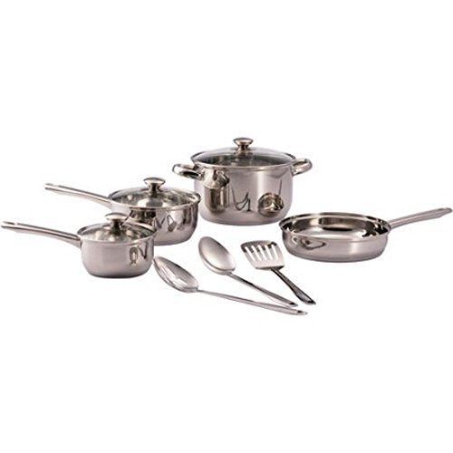 -. Title : Mainstays 10-Piece Cookware Set, Stainless Steel | Silver [ MS40-042-420-12-RP ]