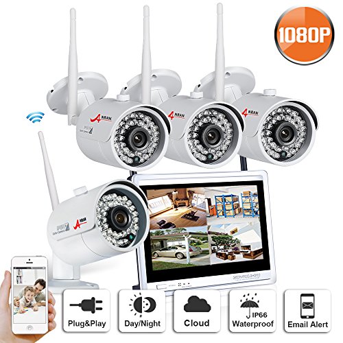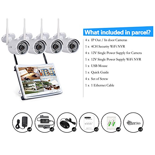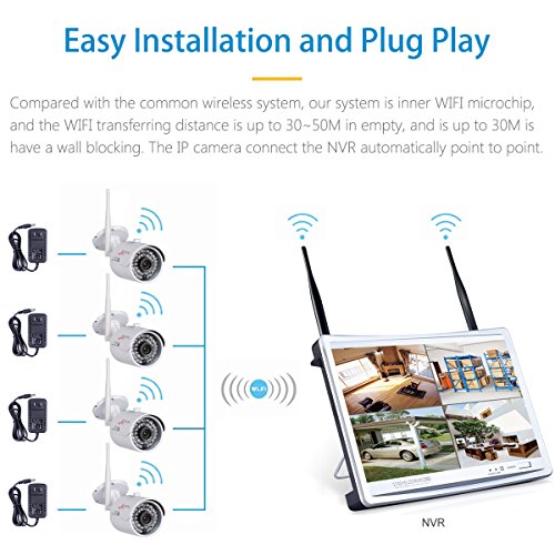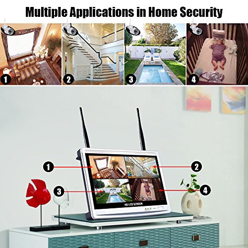 4CH 1080P IP Wireless Camera Security System 12inch Monitor WiFi NVR Outdoor Indoor Home Video Security Camera System No Hard Drive SW SWINWAY Anran