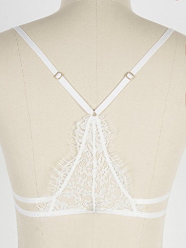 -. Binding : Apparel -. Brand : CHARLES RICHARDS -. Color : White -. Department : womens -. Feature : Asia Small/US 0-4, Asia Medium/US 0-8 / Bust[Small:25.5''-35.4'' Medium:27.5-39.3''] / Light-weight stretchable fabric / Fashion and sexy design attract people's attention / 3/4 and non-padded cups,see through and sexy -. ProductGroup : Apparel -. ProductTypeName : BRA -. Title : CR Women's Button Front Lace Cross Back Bralette Wire Free
