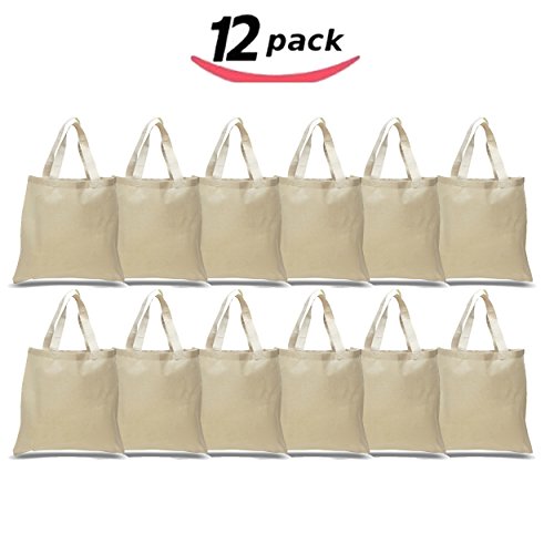 1 Dozen - (12 Pack) - Reusable 100 Percent Cotton Canvas 6oz. Fabric Blank Tote Bags in Bulk - ...