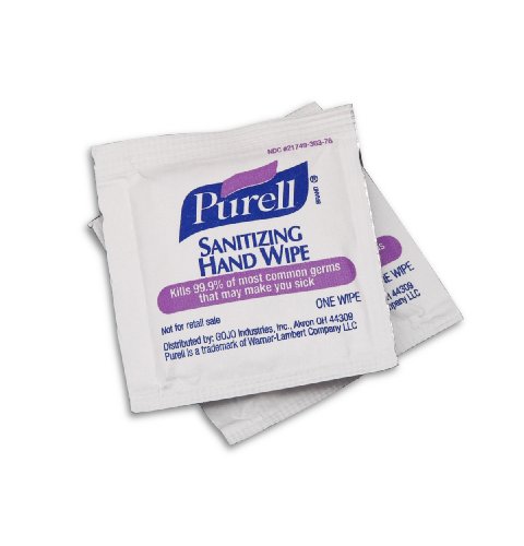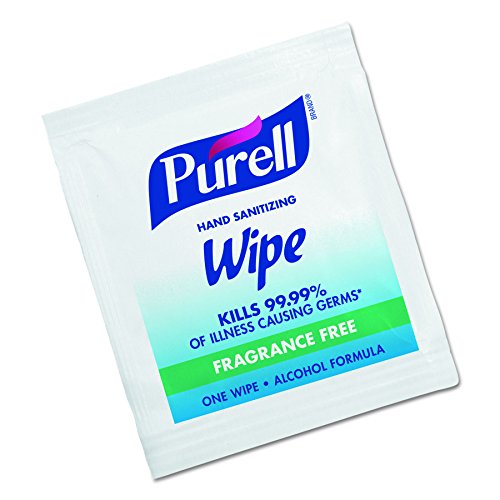 PURELL sanitizing hand wipes are antimicrobial premoistened hand wipes with 62% ethyl alcohol to help reduce the number of germs on hands and remove light soils. These 6.5 x 4.5-inch wipes are individually wrapped and folded into 2 x 2-inch tear-open packets for portability and to retain moisture.