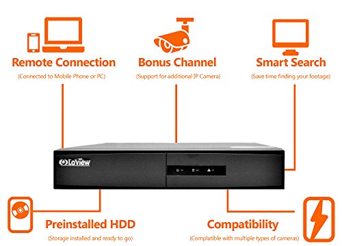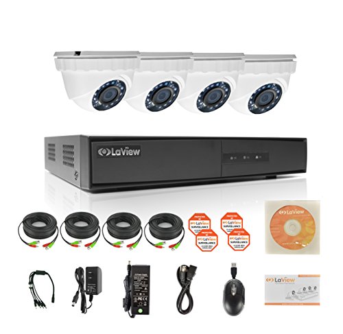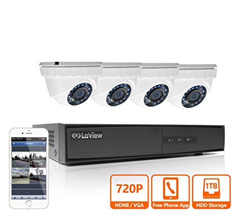 LaView HD 720P 4 Camera Security System, 4 Channel 720P HD-TVI Analog DVR w/ 1TB HDD and 4 720P HD White Dome Turret Surveillance Cameras