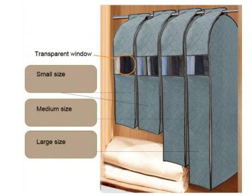 -. Feature : This Is A Set Of 4Pcs Of The Protector Covers, Including: Small *2 + Medium *1 + Large *1 / Bamboo Charcoal Non-Woven Cloth Made, Good Absorbing Power For Moisture And Smell, Anti-Dust, Anti-Insect Material. / Great Ideas To Organize And Protect Garment, Suits, Jackets, Gowns, Dresses Inside Wardrobe / Hanger-Shaped Top, Your Garment Will Fit In Perfectly / The Plastic Window Helps You See Through And Find Exactly What You're Looking For.