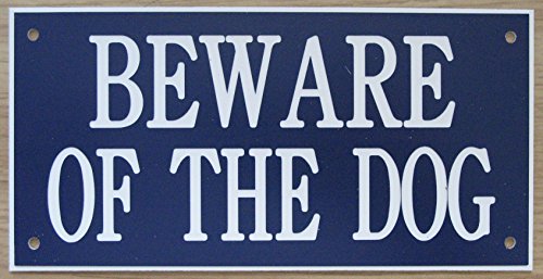 6in x 3in ACRYLIC BEWARE OF THE DOG SIGN IN BLUE WITH WHITE PRINT