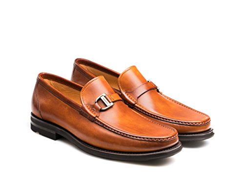 Product DescriptionHand painted calfskin loafer with single bit keeper and hand sewn moc toe0