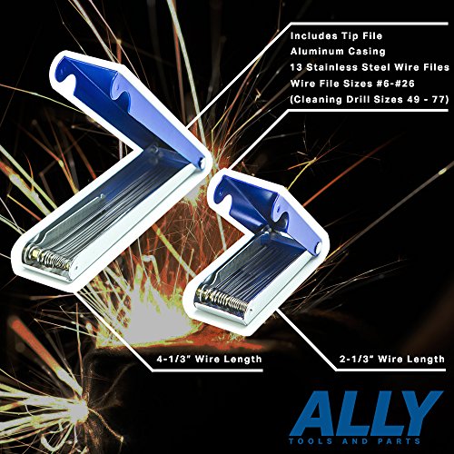 [VERSATILE]: Each Welding Tip Cleaner includes Thirteen Wire Files (49 to 77) at different lengths (4-1/3” or 2-1/3”). Includes a flat file.
