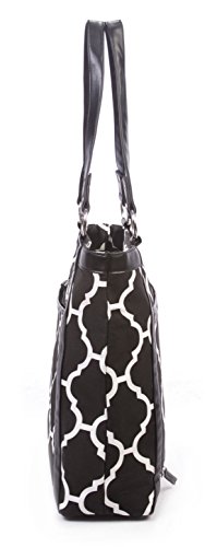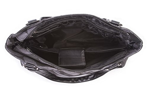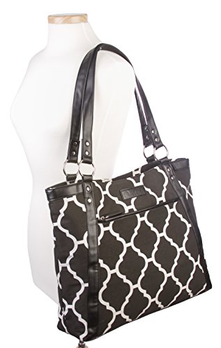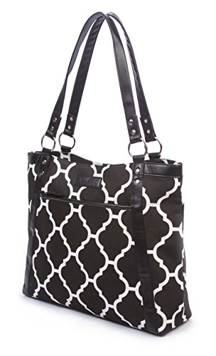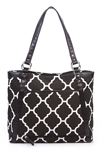 -. Feature : Padded Laptop Compartment: Specially designed side compartment fits and protects laptops 13", 14", and up to 15 inches in screen size in this Large Tote Bag. / Everyday Carryall: Useful interior and exterior pockets, rear fabric fits over rolling lage, plenty of space for items, and a convenient laptop area make this perfect for business, casual, and all-purpose use. / Materials: 100% Cotton Canvas, Vegan Leather, with Nylon interior. / Style: Professional Pattern Handbag Work Bags Travel School Everyday College Computer Case Purse Ladies Briefcase Accessories. For all Apple Macbook Pro and Air, Ultrabooks, Notebook PCs, Laptop Computers, Netbooks - 10, 11, 11.6, 12, 13, 13.3, 14, 14.7, 15, 15.4, 15.6 inches. / Dimensions: 17.5 x 13 x 4.5", Large. Lightweight: 1.7 lbs. Laptop Compartment: 15" wide. Includes a 1 year Limited Warranty.