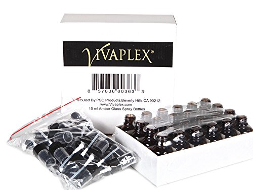 Vivaplex, 24, Amber, 15 ml (1/2 oz) Glass Bottles, with Black Fine Mist Sprayer's