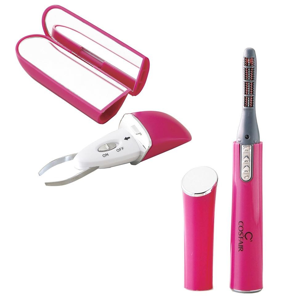| 手軽にまつげをカールさせるホットビューラーと携帯に便利なミラー付ケースに入ったライト付毛抜きのセットです。 |