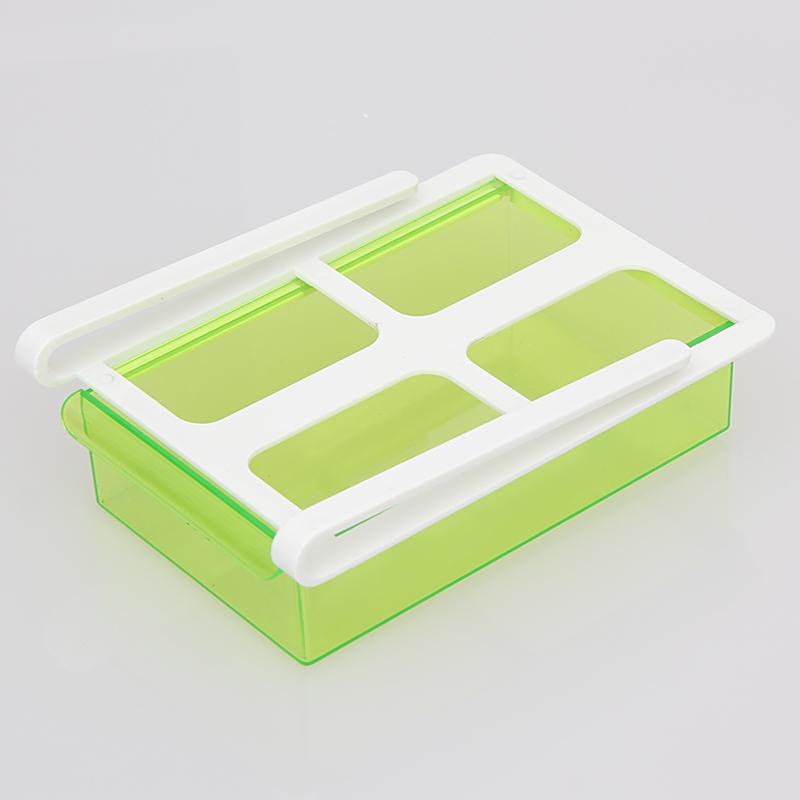 DescriptionCondition: 100% brand newMaterial: ABS, PSColor: BlueSize: 20*14.5*7cmSlide design, fridge freezer food strorage shelf; Also can be used under the table to hold some small things.Package Included: 1 x Food storage shelf