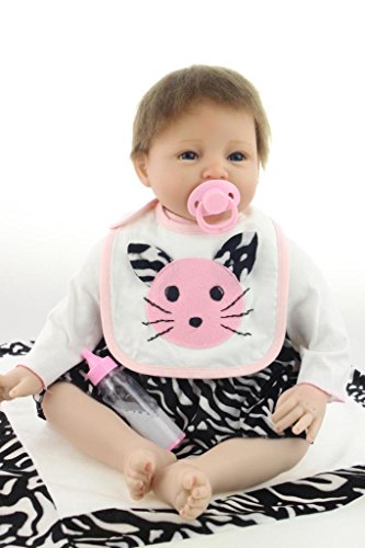 [Description] Size:22inch(55cm) Weight:about 1.2-1.4KG(2.6-3.0LB).The doll will come with a magnetic pacifier to fit the mouth. Head_arms and legs:Soft silicone_Body:Cloth filled with cotton_very soft. meet safety requirements of ASTM F963 age 3 +. Eyes:High Quality Acrylic_can not blink.Mouth:Magnetic. Hair:High Quality Mohair_Manual implantation_can wash and dress up. Cloth:Handmade.According to the doll size. fits into newborn size(S 0-3m) baby clothes.The doll will come with the clothes.