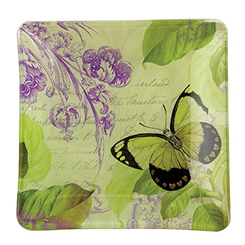 -. Feature : Decorative glass dish / 4.5-inch square; Hand wash only / A sophisticated motif of graceful butterflies and stunning florals / Perfect Size for soap, candles and small items / Look to Mudlark for Paper products, handcrafted soaps and candles that are both beautiful and environmentally Smart