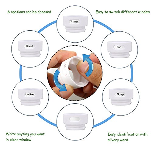 - ID WINDOW EASILY IDENTIFY CONTENTS - Each travel size toiletries bottle is a different color and has a rotatable cosmetics collar so you can change the text that shows. Easily identify the contents through different ID windows or different colors of the bottles