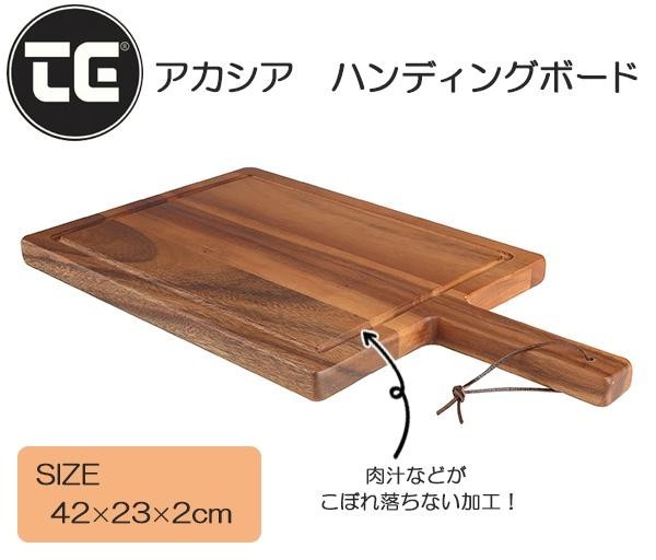 天然のアカシア材を使用した持ち運びに便利なハンディングボード。ボードの隅に切り込みを入れ、肉汁等がこぼれ落ちない加工がされております。 |