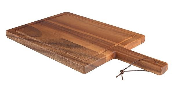 | 天然のアカシア材を使用した持ち運びに便利なハンディングボード。ボードの隅に切り込みを入れ、肉汁等がこぼれ落ちない加工がされております。 |