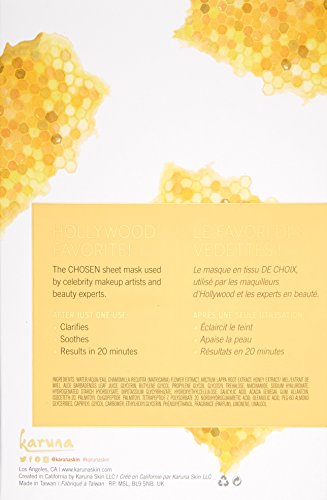 Karuna sheet masks help restore skin’s vitality by pushing serum deeper onto the skin surface where ingredients are needed the most. The mask + serum duo offers so much more than serum, clay or gel does on its own: + Deep conditions skin + Creates visibly hydrated, softer, smoother skin + 100% all-natural fiber cloth Made from biodegradable wood pulp natural cloth that retains 50% more moisture than synthetic material, Karuna Sheet Masks help pores fully absorb nourishing ingredients that help create instantly visible results. KARUNA TIPS + For an extra-refreshing experience, place your Karuna Sheet Mask in the refrigerator for a couple of hours before applying to your face. + For extra absorption, soak the Sheet Mask in its sealed packet in a bowl of hot water for 3-5 minutes for warm compression. + NEVER microwave the Sheet Mask because the sealed packet has a foil lining.