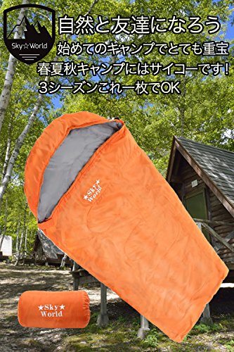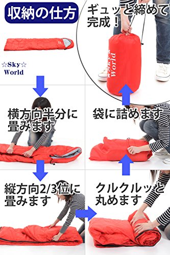 Sky☆World(스카이 월드) 침낭 슈라후 세척 가능 봉투형 경량 콤팩트 수납 봉투 첨부 등산 차 안박 방재 긴급한 볼일로 적정 온도7~15℃ 신장180cm까지 대응