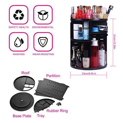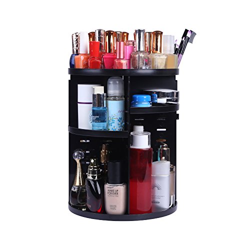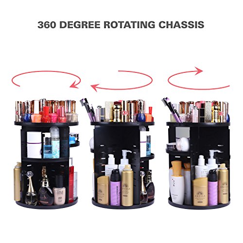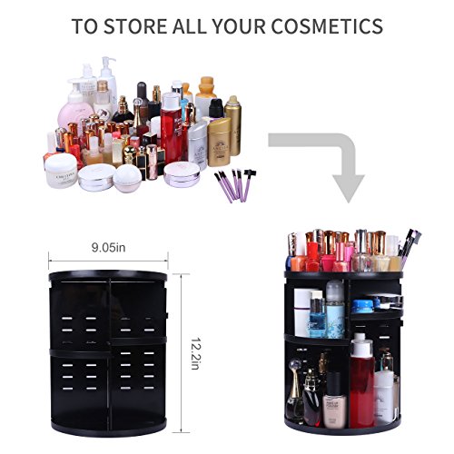 Rotating make up organizer 360 degree rotating cosmetic storage adjustable large capacity Fits for Cosmetics Brushes Lipsticks and Jewelry lager Size (black)