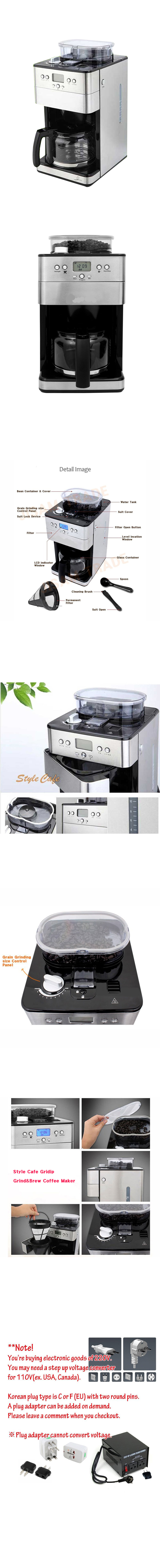 Style Cafe Gridip Grind&Brew Coffee Maker Brewer machine with built-in milling Grinder 220V & Simple English User's Guide
