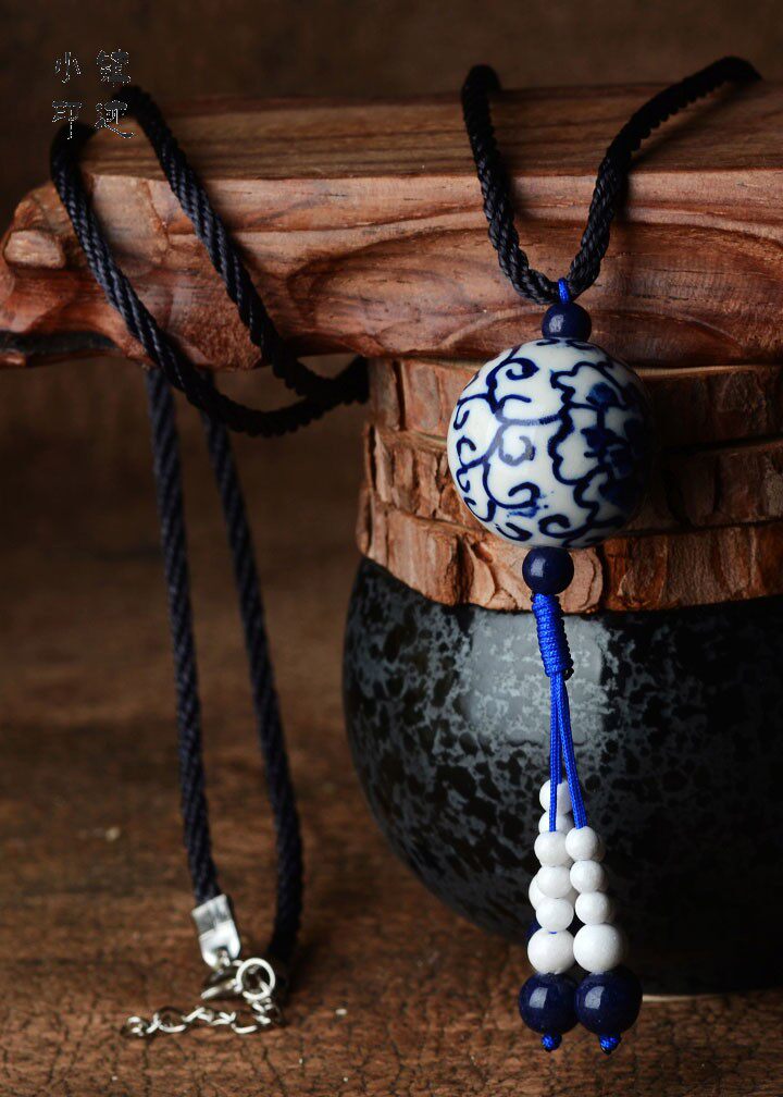 Simple blue and white beads fall sweater chain