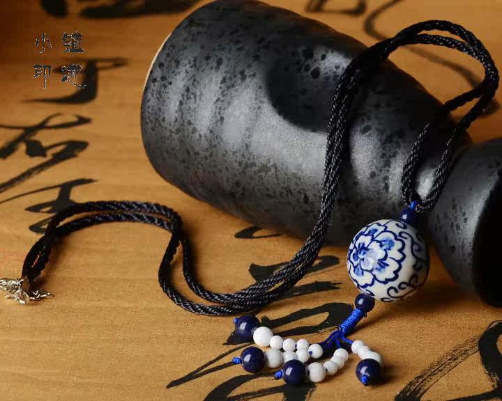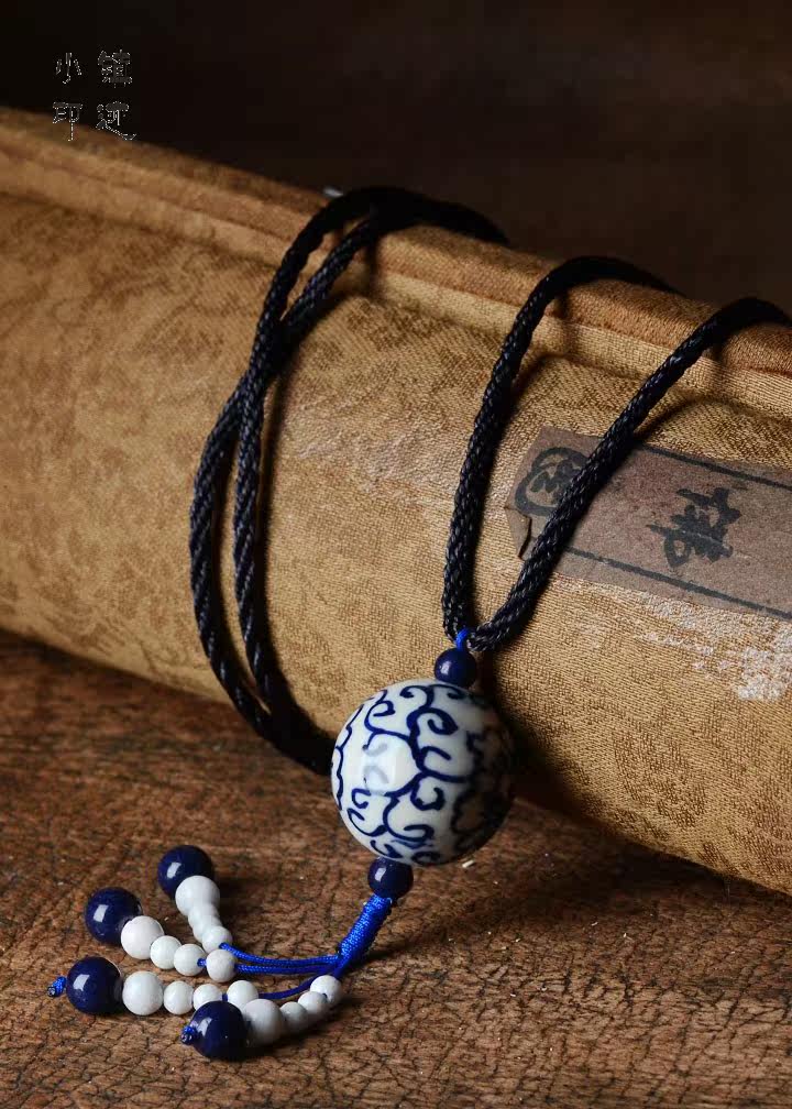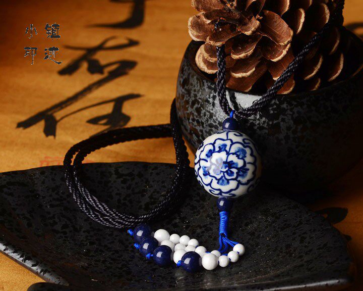 Material: twine, ceramics, lapis lazuli, a blue silk light