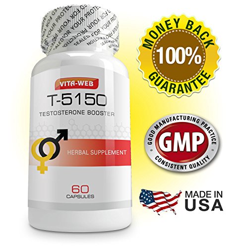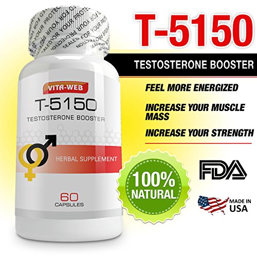 - Feature : PROVEN TO INCREASE NATURAL TESTOSTERONE LEVELS OR 100% MONEY BACK! Our T-5150 Testosterone Booster pills have been proven customer after customer to work. They have noticed an increase in energy, increase in stamina, improvement in overall mood and confidence, and a huge difference right away from taking it. This is one product that will keep working just as hard as you are. / ARE YOU LOOKING TO INCREASE YOUR MUSCLE MASS AND STRENGTH? Vita-Web's safe, effective T-5150 Natural Testosterone Booster is the supplement for you. We've heard from multiple satisfied customers that they have seen overall improved strength while working out. This is perfect for gym rats and non gym rats. You will notice an increase in lean muscle mass while reducing body fat at the same time! Perfect to stack with other products. / #1 BEST SELLING PURE HERBAL TESTOSTERONE BOOSTER! By increasing testosterone levels, not only do you improve your strength, but you can increase your energy levels and speed up your metabolism, resulting in a leaner, trimmer YOU. This is one product that is the REAL DEAL. You will have a better attitude and more confidence with our T-5150 Testosterone Booster! / REAL RESULTS FROM A SUPPLEMENT THAT ACTUALLY WORKS!- improve strength, muscle mass, libido, energy, and metabolism with just one supplement. Our T-5150 Testosterone Booster is 100% natural and safe and really works. Customers are AMAZED with the results that they get. With such a great product at a great price, this is one supplement you need! / DO YOU WANT THAT EXTRA EDGE IN THE GYM AND AT HOME? Do you want to feel more motivated, have get stronger, last longer, have better endurance? BECOME A MAN AGAIN with Vita-Web's T-5150 Testosterone Booster! With a 100% Money Back Guarantee, what do you have to lose? ORDER NOW WHILE ON SALE so you can maximize savings and maximize your results!