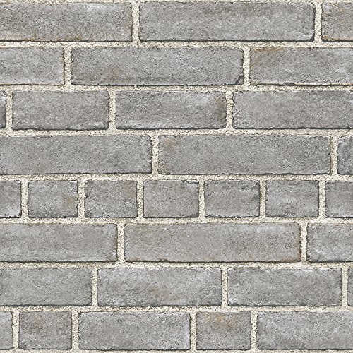 NuWallpaper NU2236 Brick Façade Peel and Stick Wallpaper, Grey