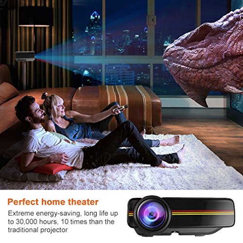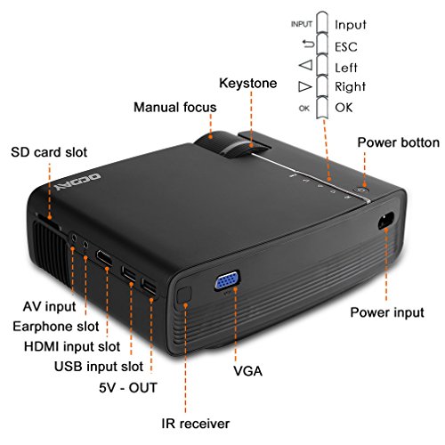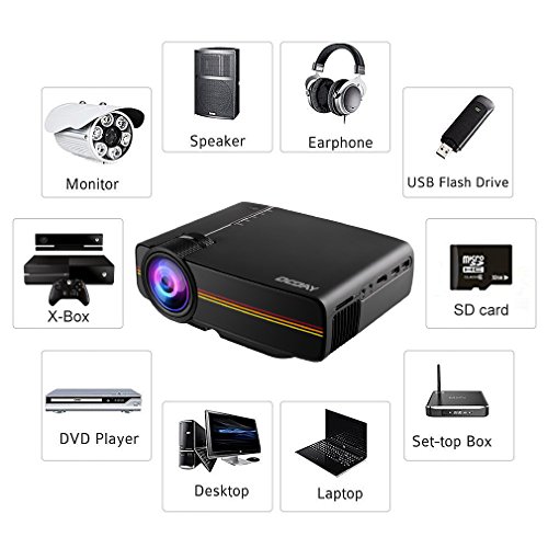 OCDAY 1080P LCD Mini Projector, 1200 Lumens Multimedia Home Theater Video Projector Support 1080P HDMI USB SD Card VGA AV for Home Cinema TV Laptop Game